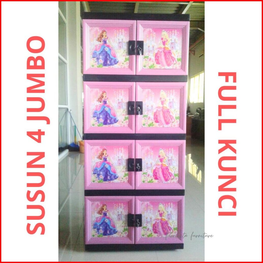 Lemari Plastik Susun 4 Full Kunci Karakter Princess Jumbo