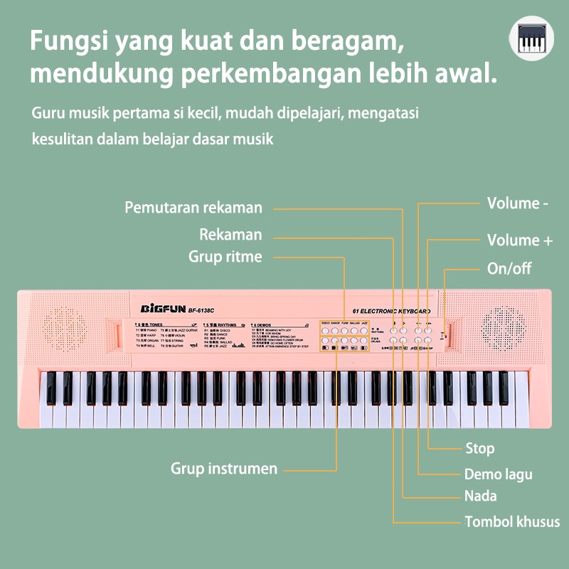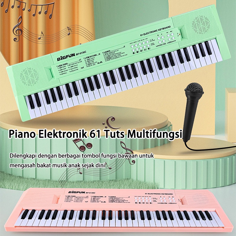 Benston Music - Piano Elektronik 61 Tuts Multifungsi untuk anak, cocok untuk pemula, dilengk dengan mikrofon, pengisi