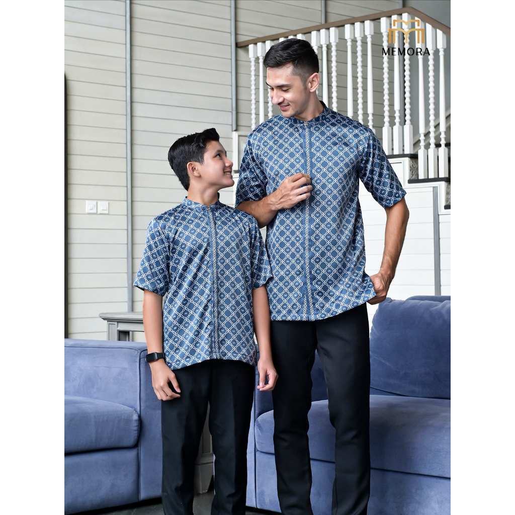 Baju Koko Couple Ayah Dan Anak Series Kamari Prussian Blue Baju Lebaran Couple Ayah Dan Anak Lakilaki