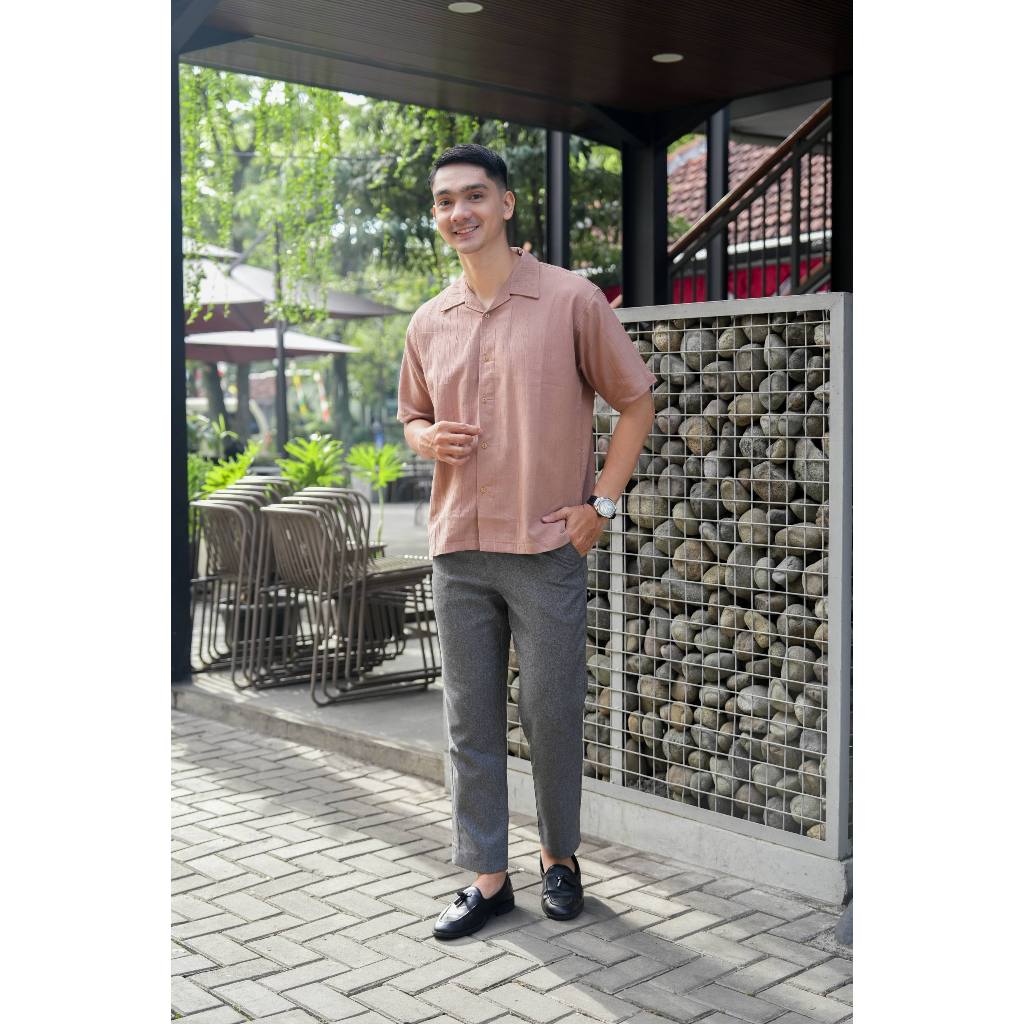 Kemeja Polos Linen Pria Lengan Pendek Bronze