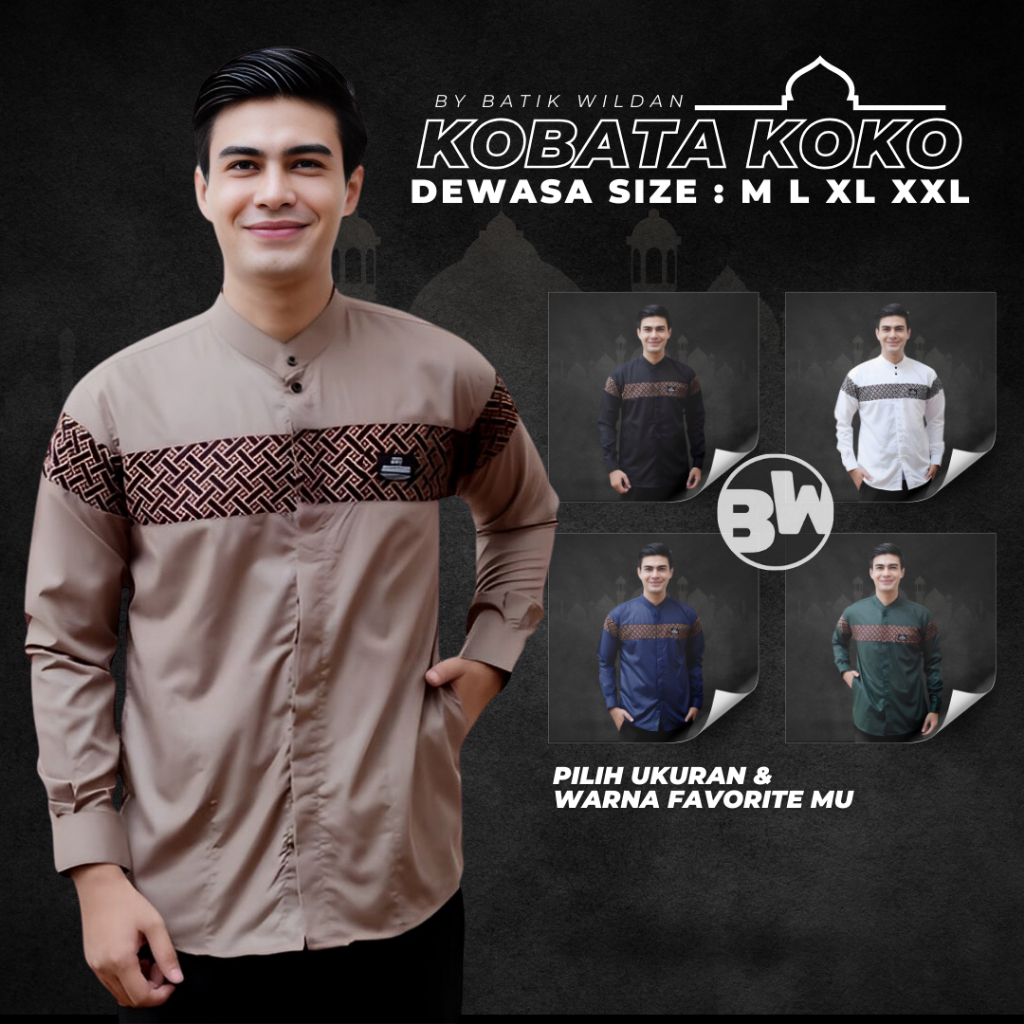Setelan Koko dan Sarung Pria Dewasa Lengan Panjang Motif Kobata Sarung Batik Nyaman Digunakan Wildan