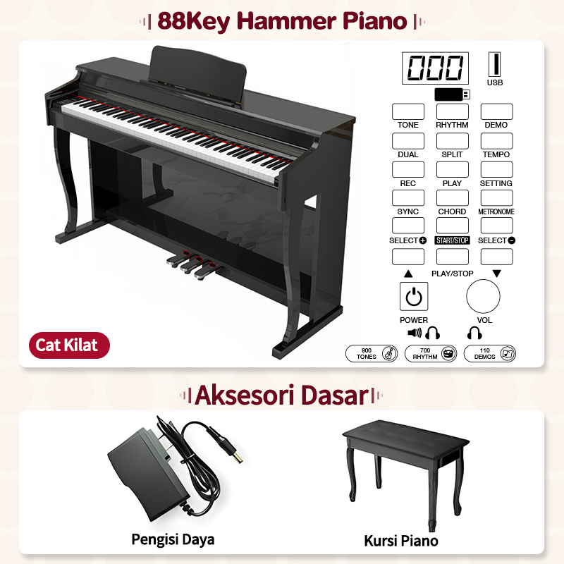 Benston Music Piano Elektrik Profesional, Piano Elektrik Palu Berat 88keys, Piano Elektrik Latihan dan Ujian Profesional
