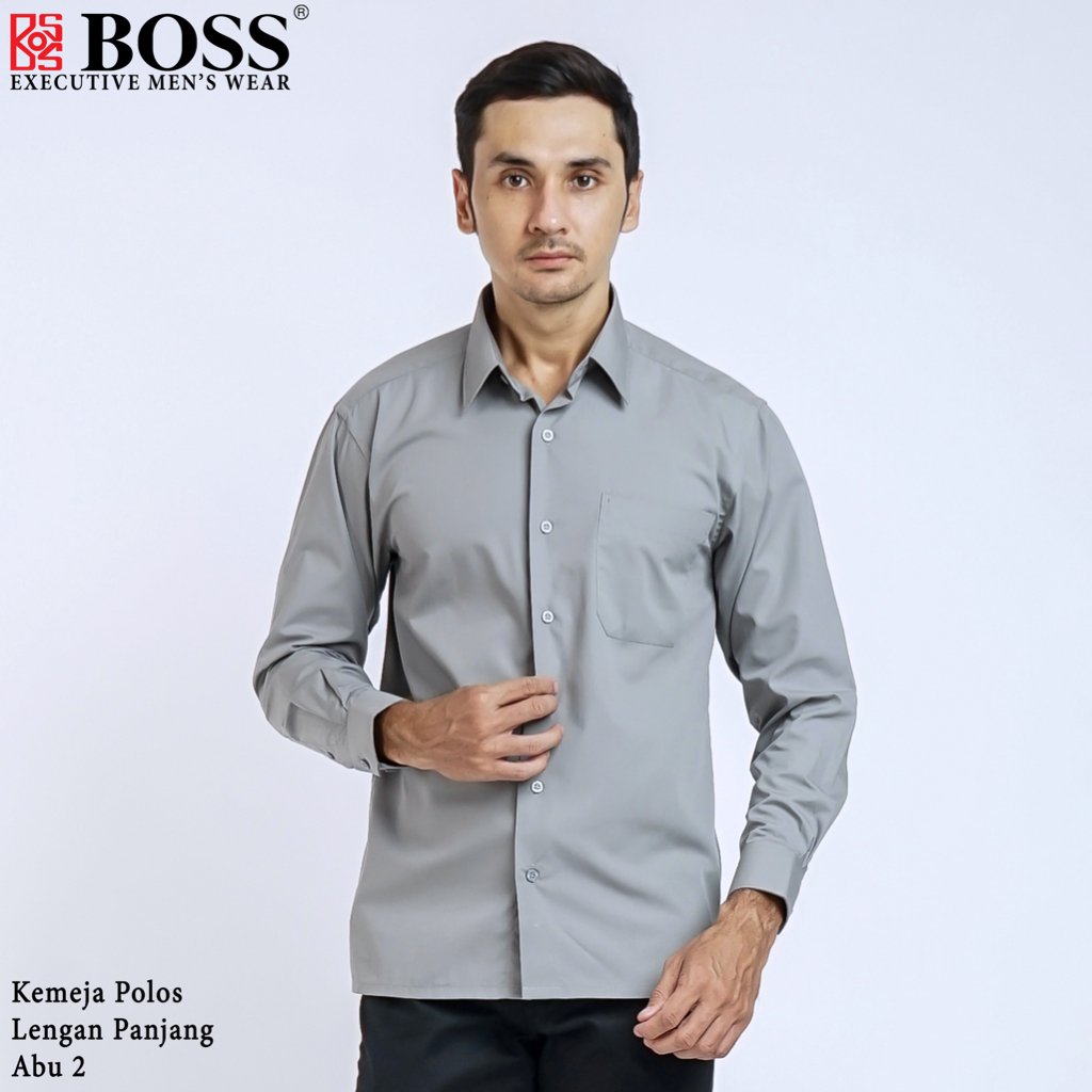 Kemeja Polos Pria Lengan Panjang Regular Fit Abu
