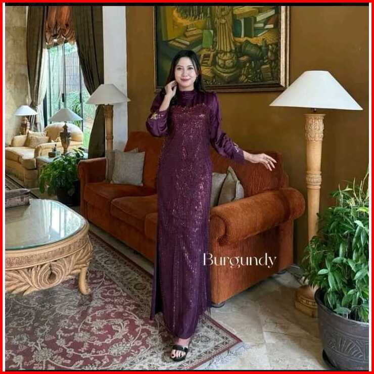 Gamis Kondangan Wanita Remaja Model Press Body Bahan Satin Mix Brukat Premium Warna Mahogany S-xxl