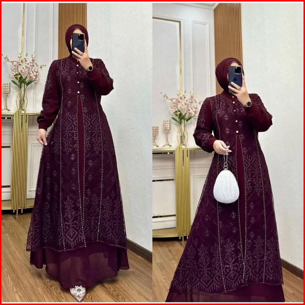 Denara Dres Gamis Brukat Swaroski Mewah Kondangan Pesta Material Ceruty Babydol Mix Brukat Fulpuring