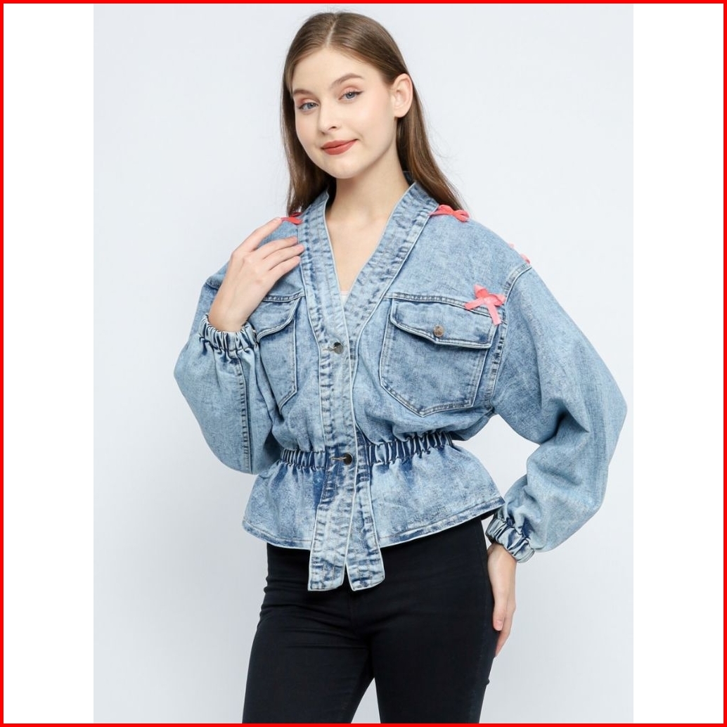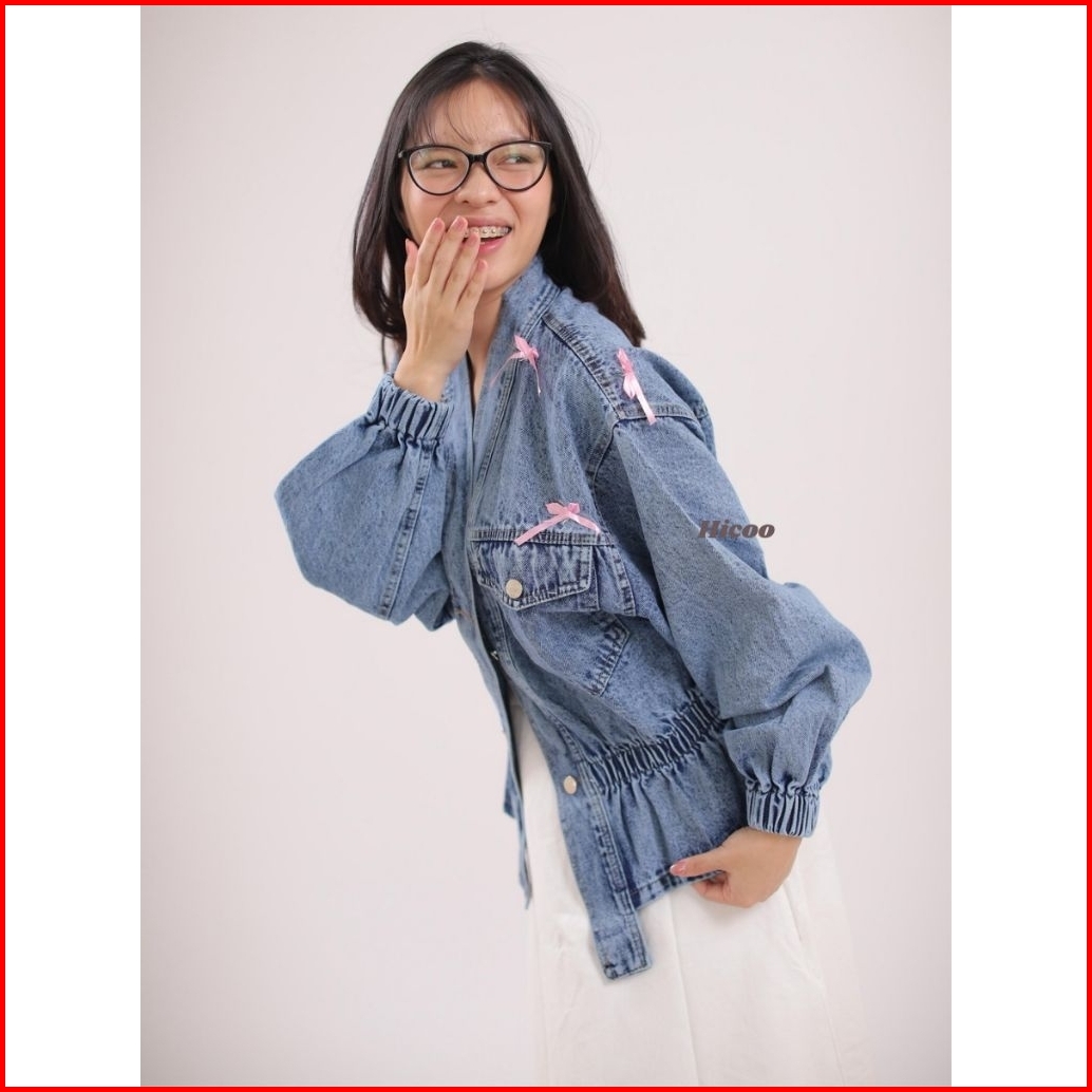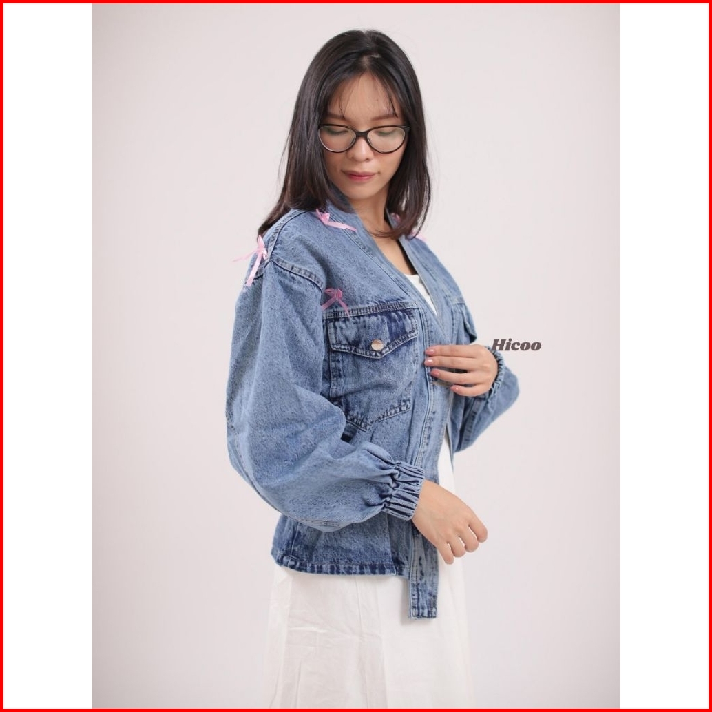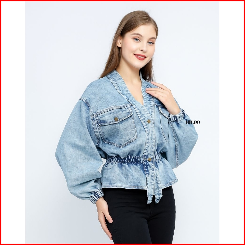 Hicoo - Jaket Jeans Wanita Korean Style V-neck