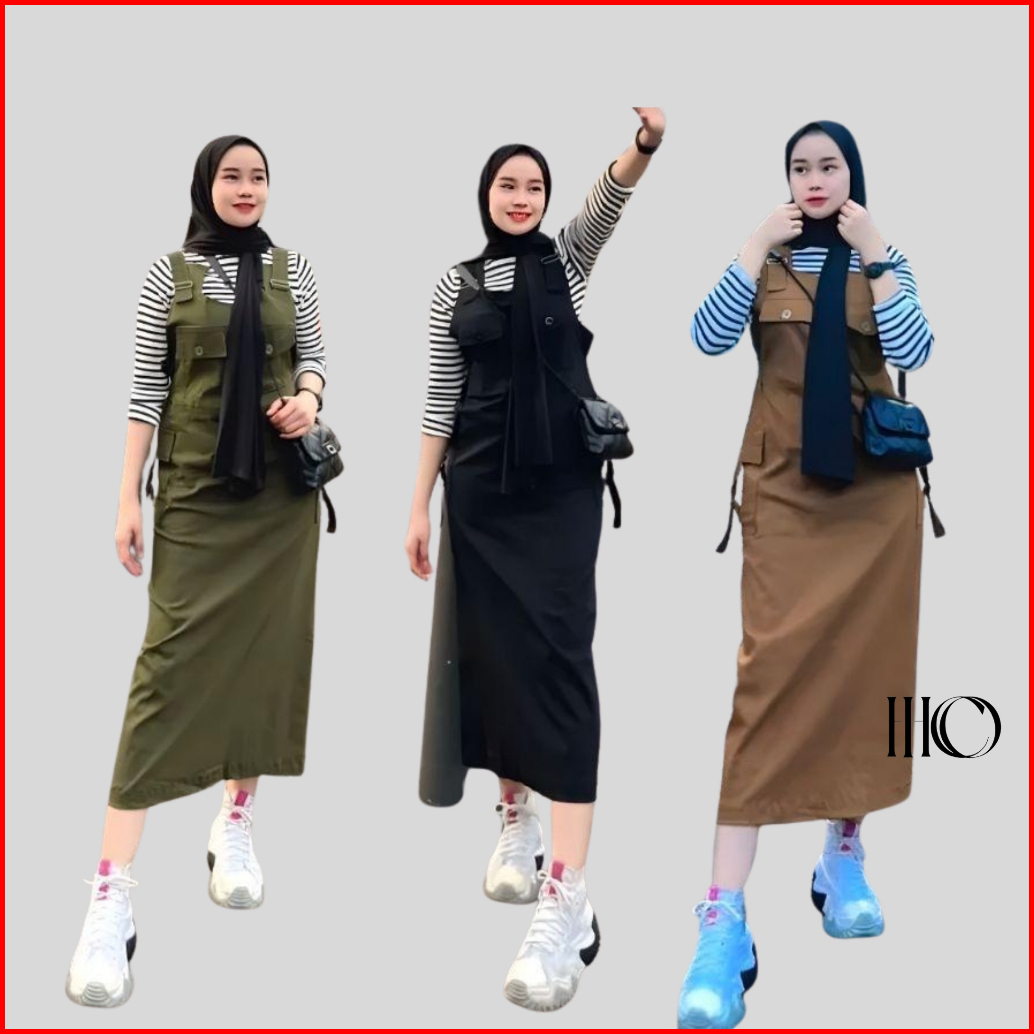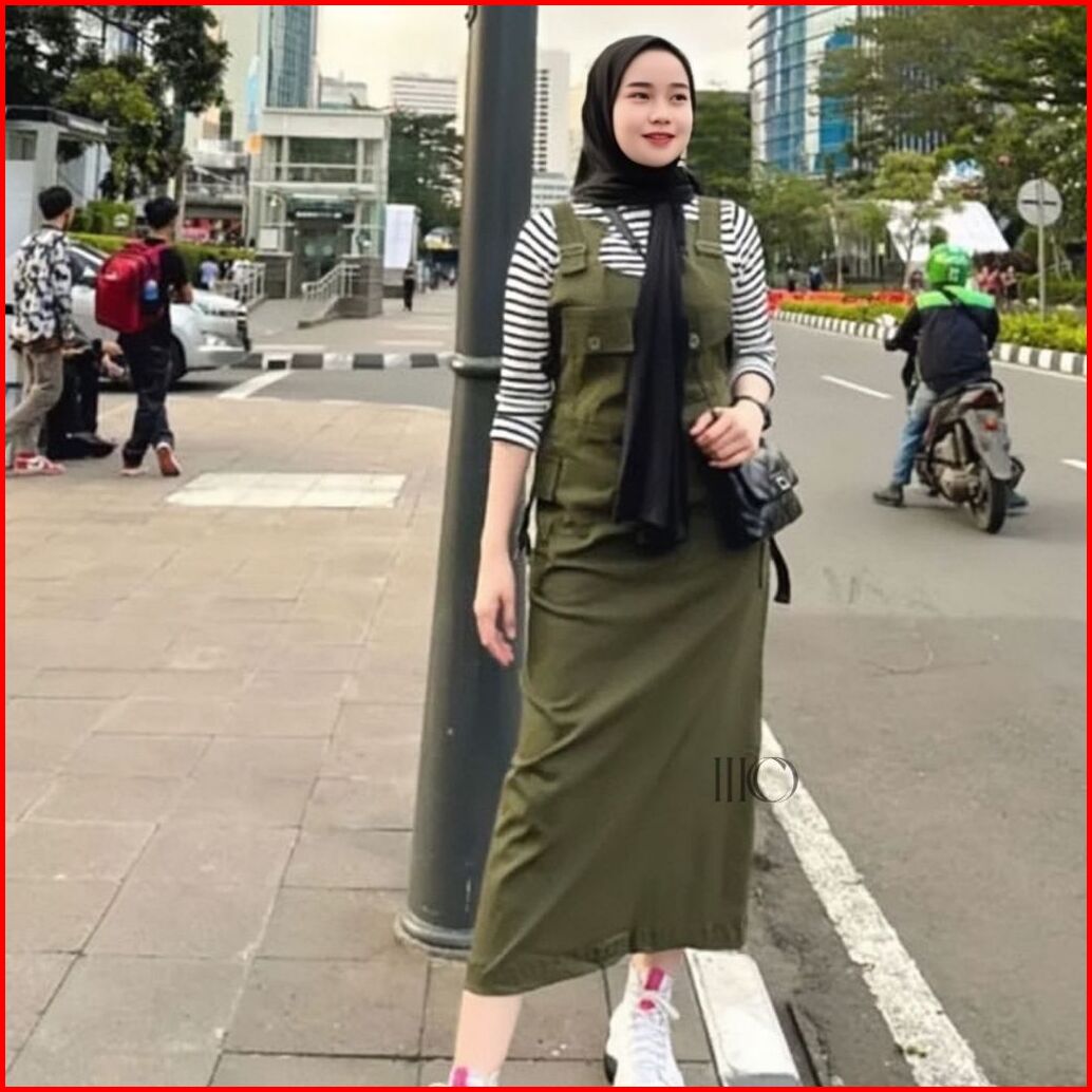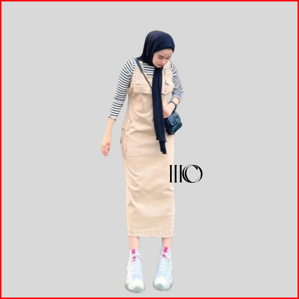Hicoo Elizabeth Overall Rok Cargo Wanita Katun Twill Combed Kekinian Korean Style