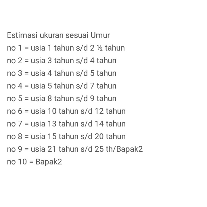 No. 1, No. 2, No. 3, No. 4, No. 5, No. 6, No. 7, No. 8, No. 9, Peci Rajut Balita