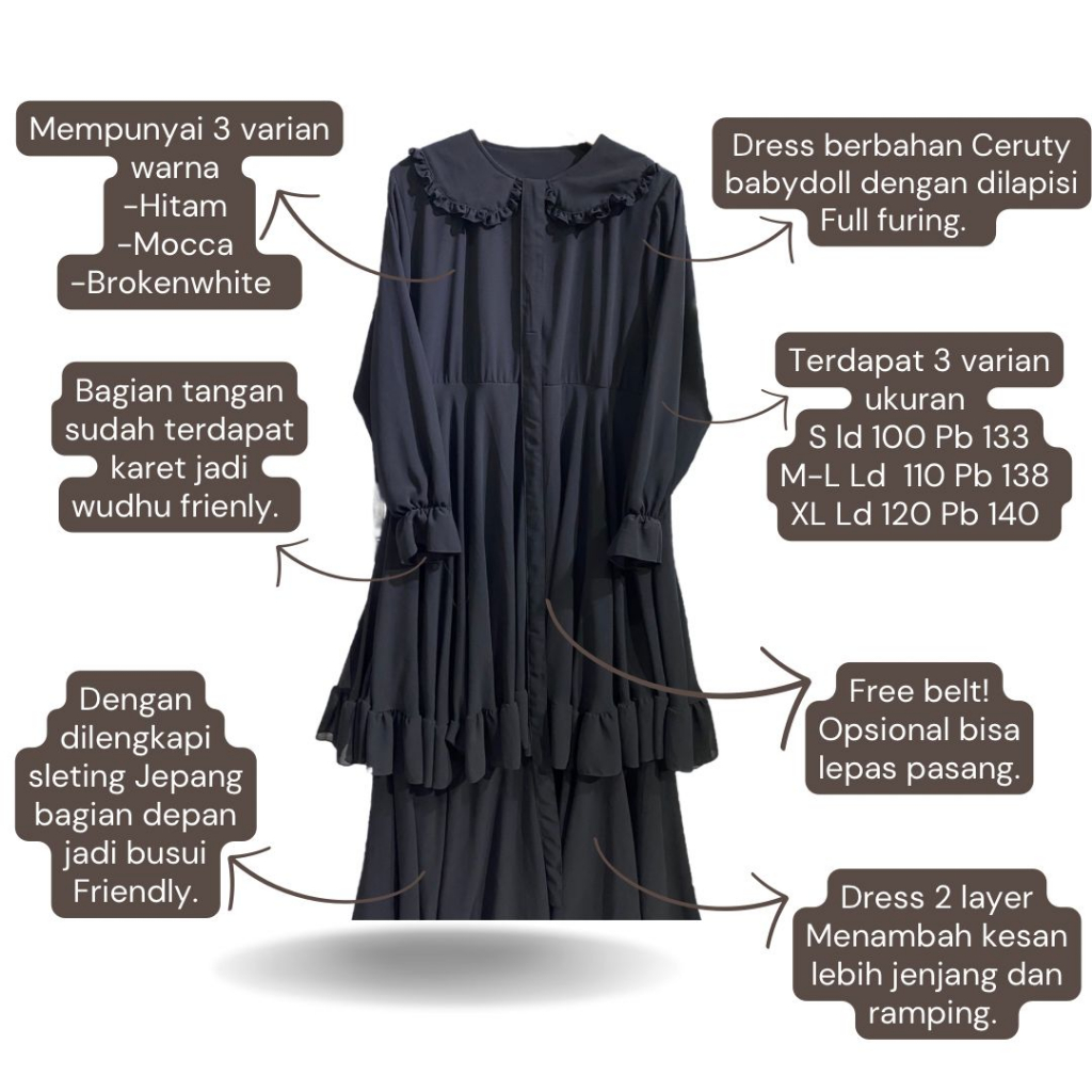 Dress Wanita Dress Bahan Ceruti Babydoll Busui Ada Size S, M, L, Xl