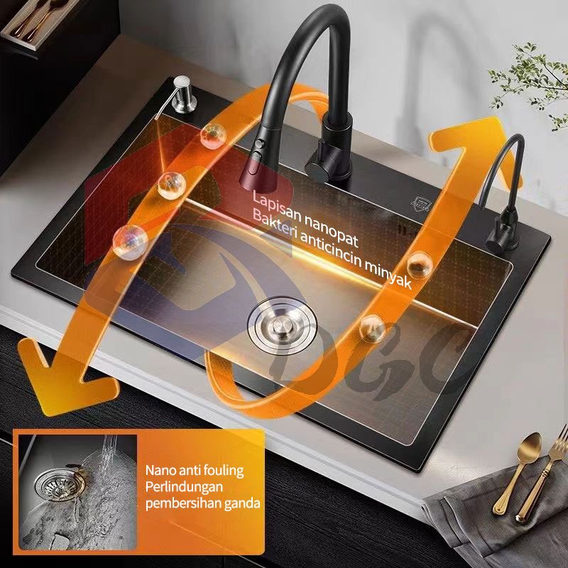 DGC Wastafel Kitchen Sink 6045 Set Kitchen Sink 304 Stainless Steel Bak Cuci Piring Stainless Hitam Cuci Piring