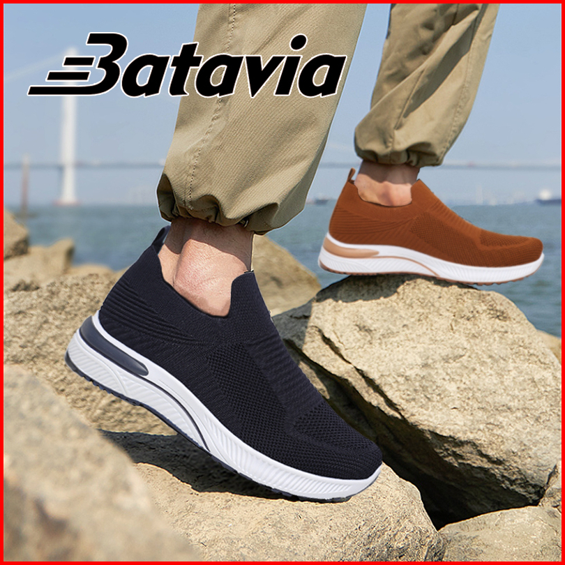 Batavia Grosir Sepatu Kanvas Pria Rajut Sepatu Tanpa Tali Hitam Sepatu Cowo Pria Ringan B20