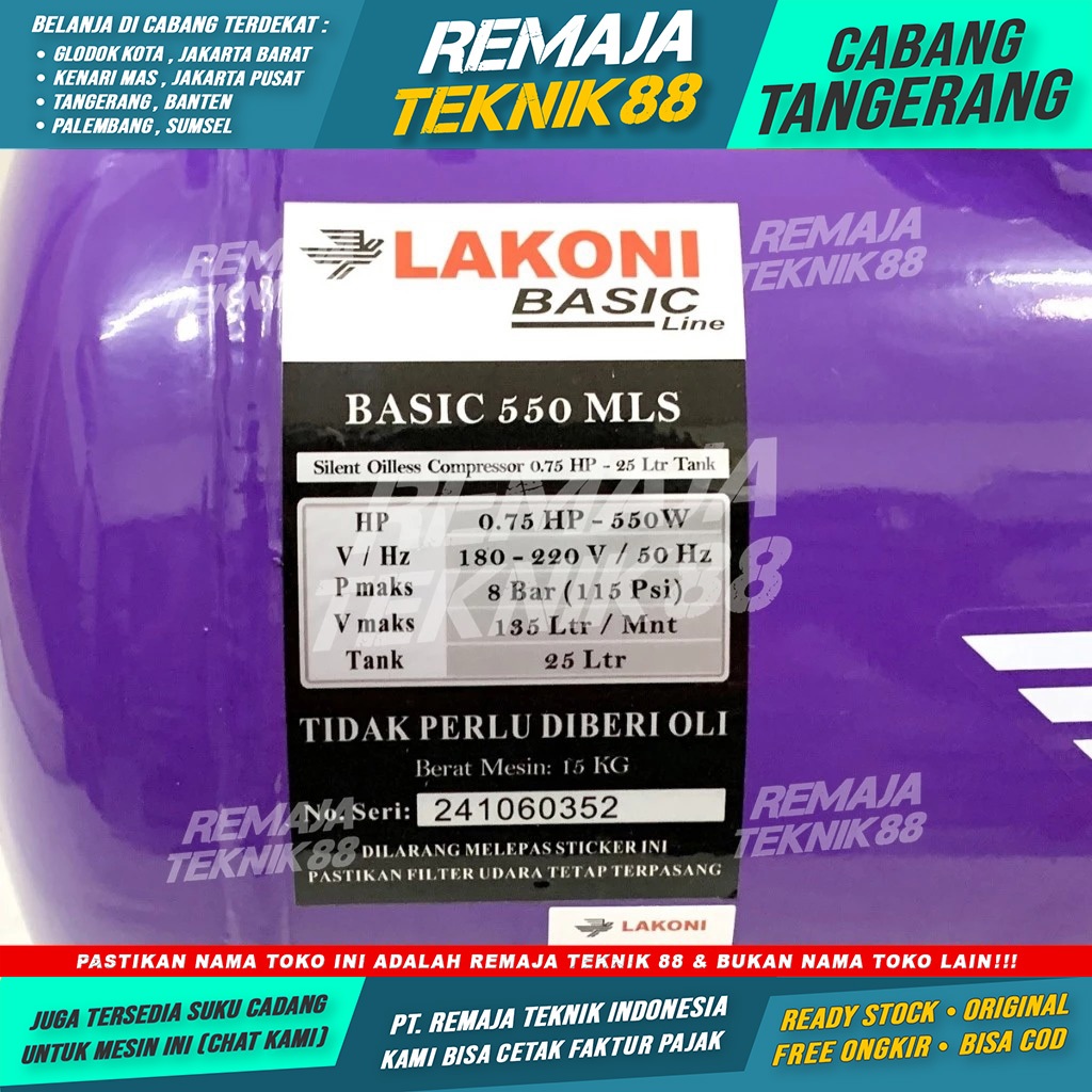 NEW!! KOMPRESOR ANGIN OILESS 25L LAKONI BASIC 550 ML SERIES 0,75HP / KOMPRESOR SILENT LAKONI 550 MLS 550 WATT