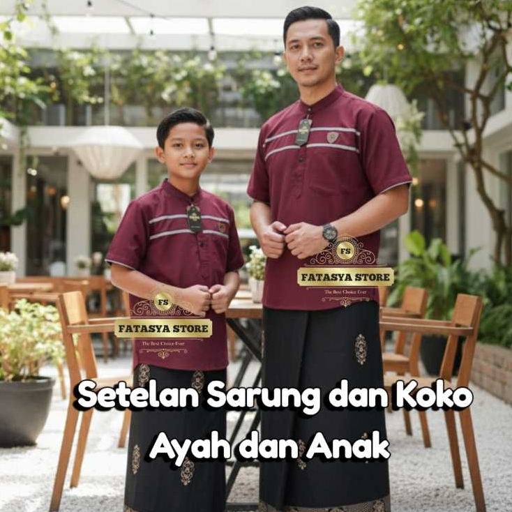 Set Koko dan Sarung Instan Couple Ayah dan Anak Lengan Pendek List Dada Model Terbaru FatasyaStore