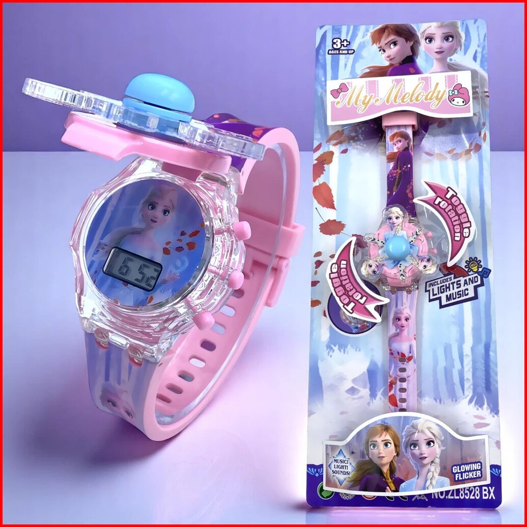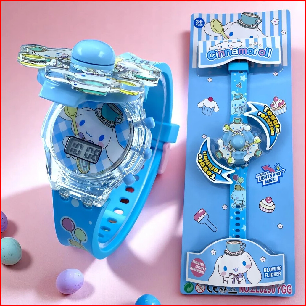 Caitlynmart Jam Tangan Anak Spinner Toggle Rotation Music Light Sounds Dengan Karakter Sanrio Kuromi
