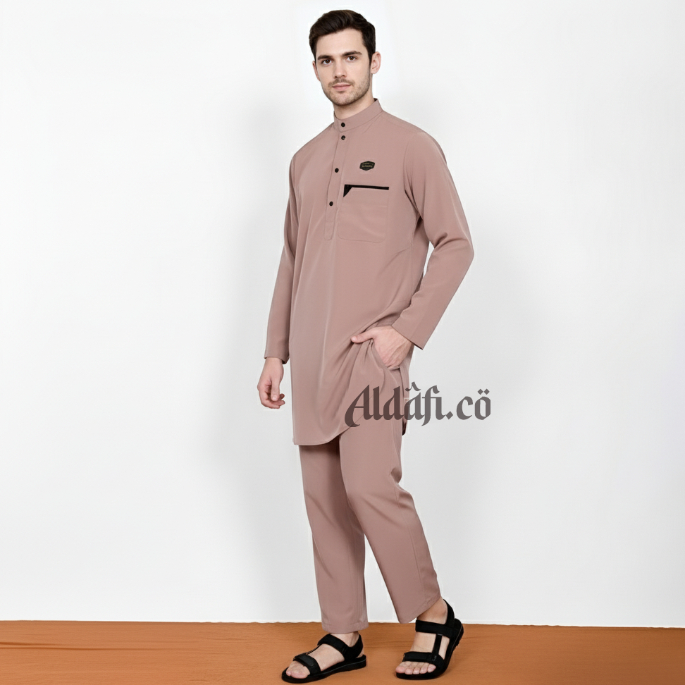 Koko Setelan Polos Lengan Panjang Baju Kurta Pakistan Pria Dewasa Set Celana Nyaman Digunakan