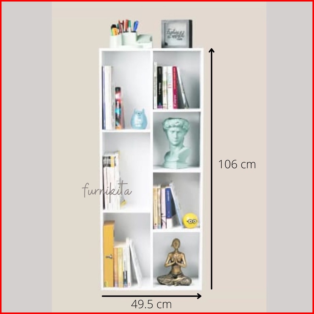 Rak Buku Pajangan Serbaguna 7 Sekat Putih Minimalis Lemari Buku Lemari Hias