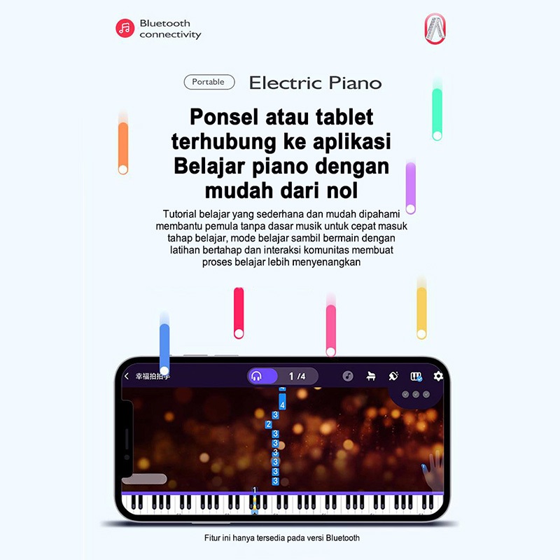 Piano elektronik lipat 61 tuts, khusus untuk dewasa dan anak-anak pemula, portabel, pintar, cocok untuk belajar mandiri