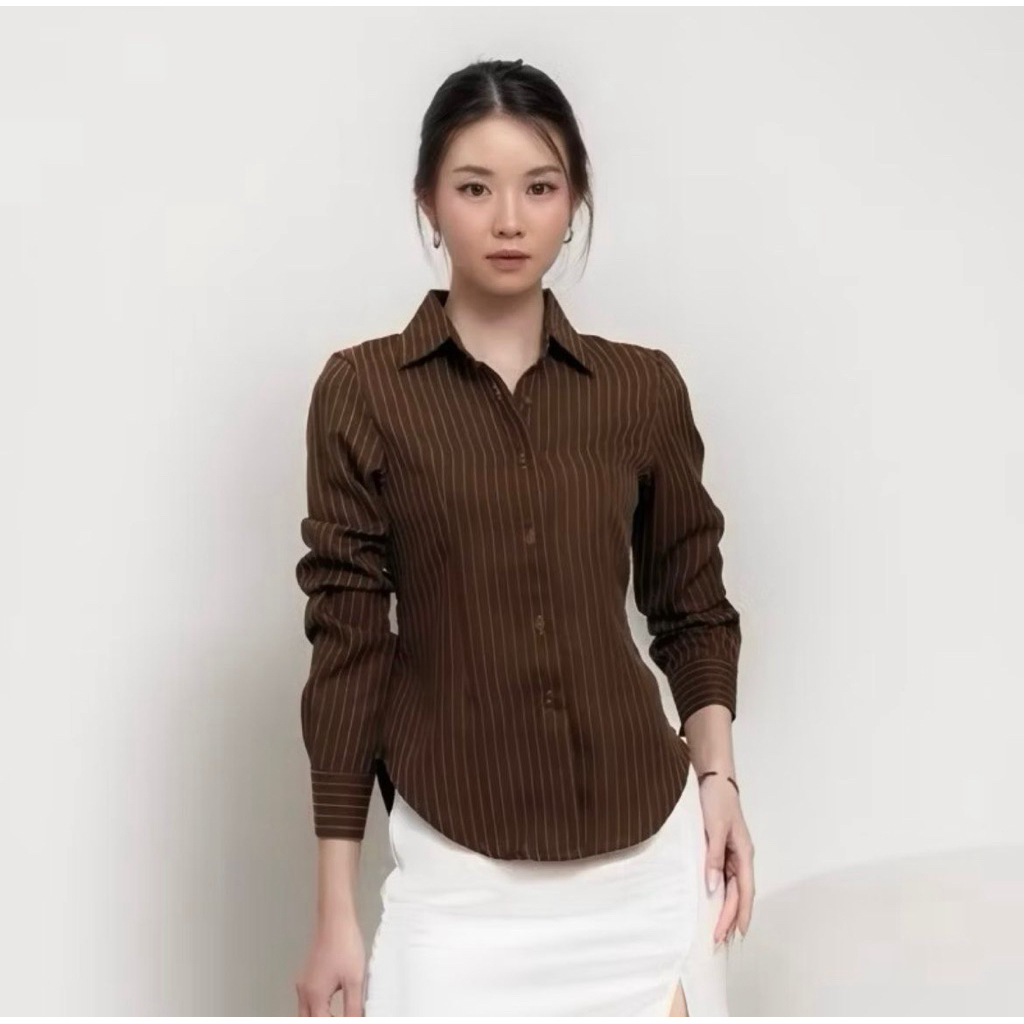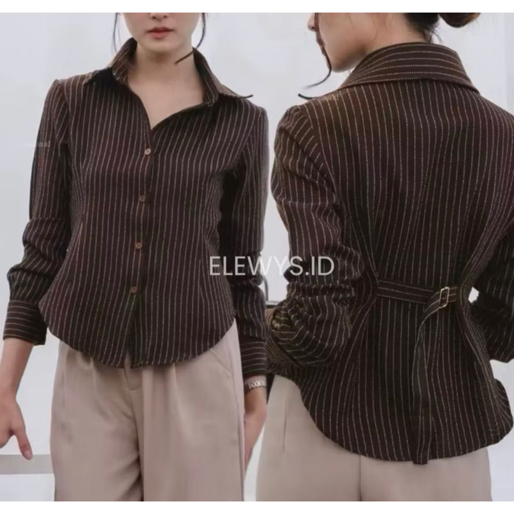 Baju Atasan Wanita Luna Stripe Baju Kemeja Wanita Kekinian Atasan Wanita Elegan