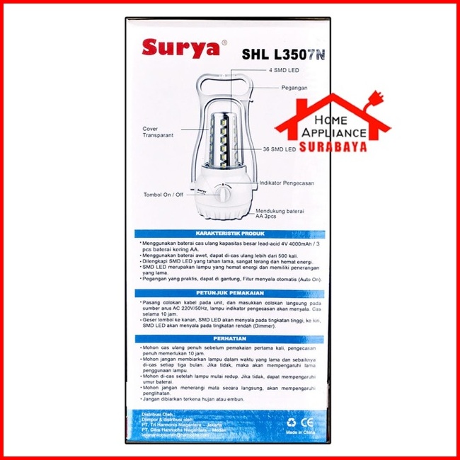 Lampu Emergency Lamp - Lampu Darurat Surya Shl L 3507 N L-3507 N L3507n 40 Smd Led