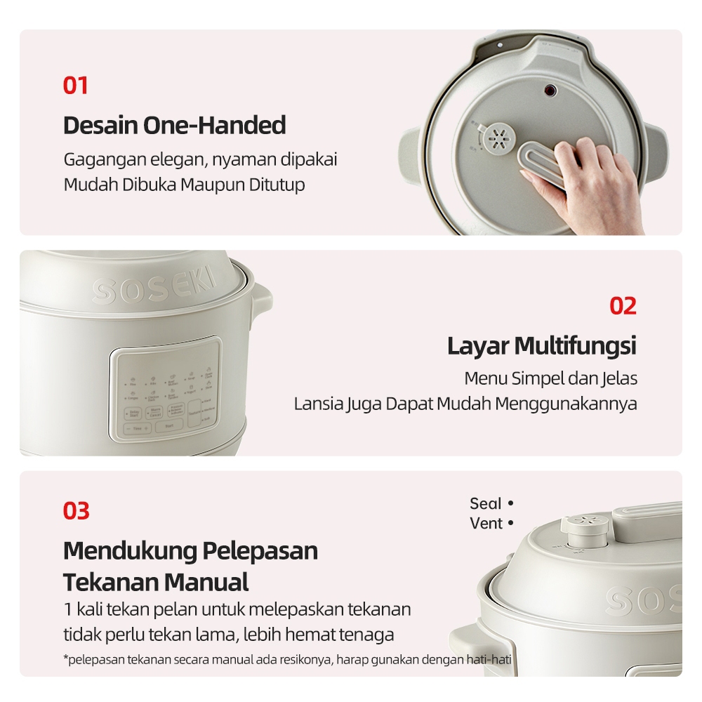 SOSEKI Panci Presto Listrik Multifungsi 1.2L / 10 Menu Pressure Cooker Fitur Lepas Tekanan Otomatis/Presto daging