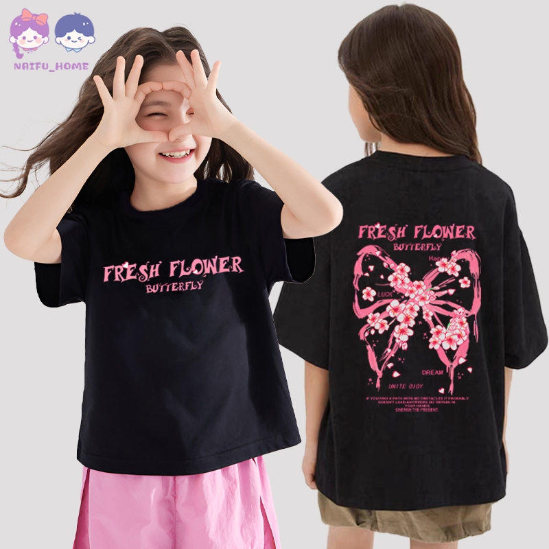 Kaos Anak Perempuan Casual Korea Style Bahan Katun Usia 2–13 Tahun