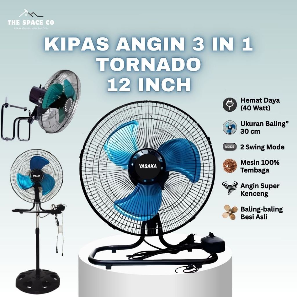 Kipas Angin Besi Tornado Jumbo Duduk Dinding Berdiri 12 Inch 3in1 Hemat Daya Angin Kencang