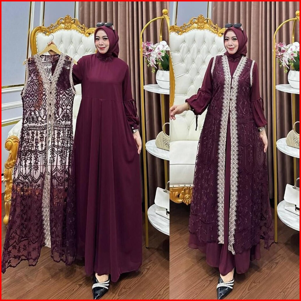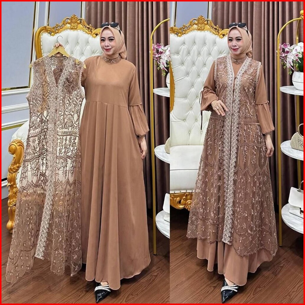 Naura Dress Wanita Terbaru Lebaran Gamis Mewah Simpel Elegan Pesta Kondangan Gamis Brukat Mix Renda Mewah
