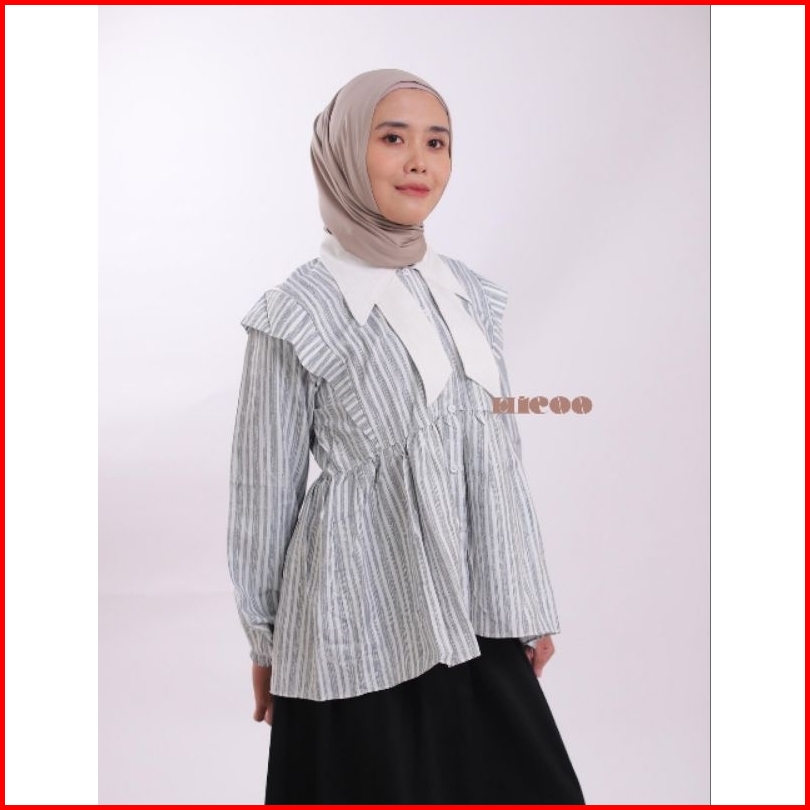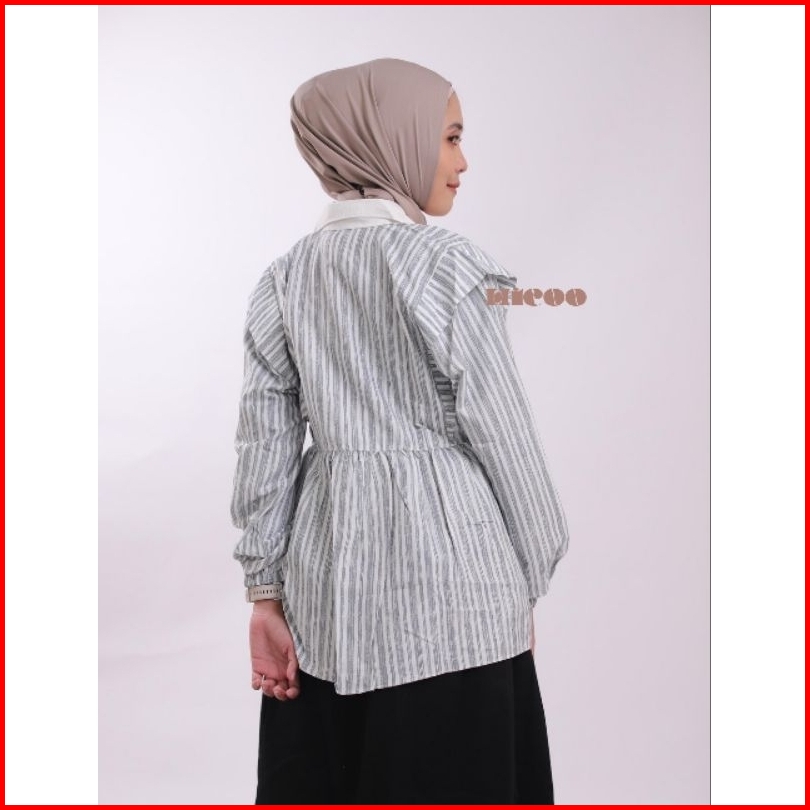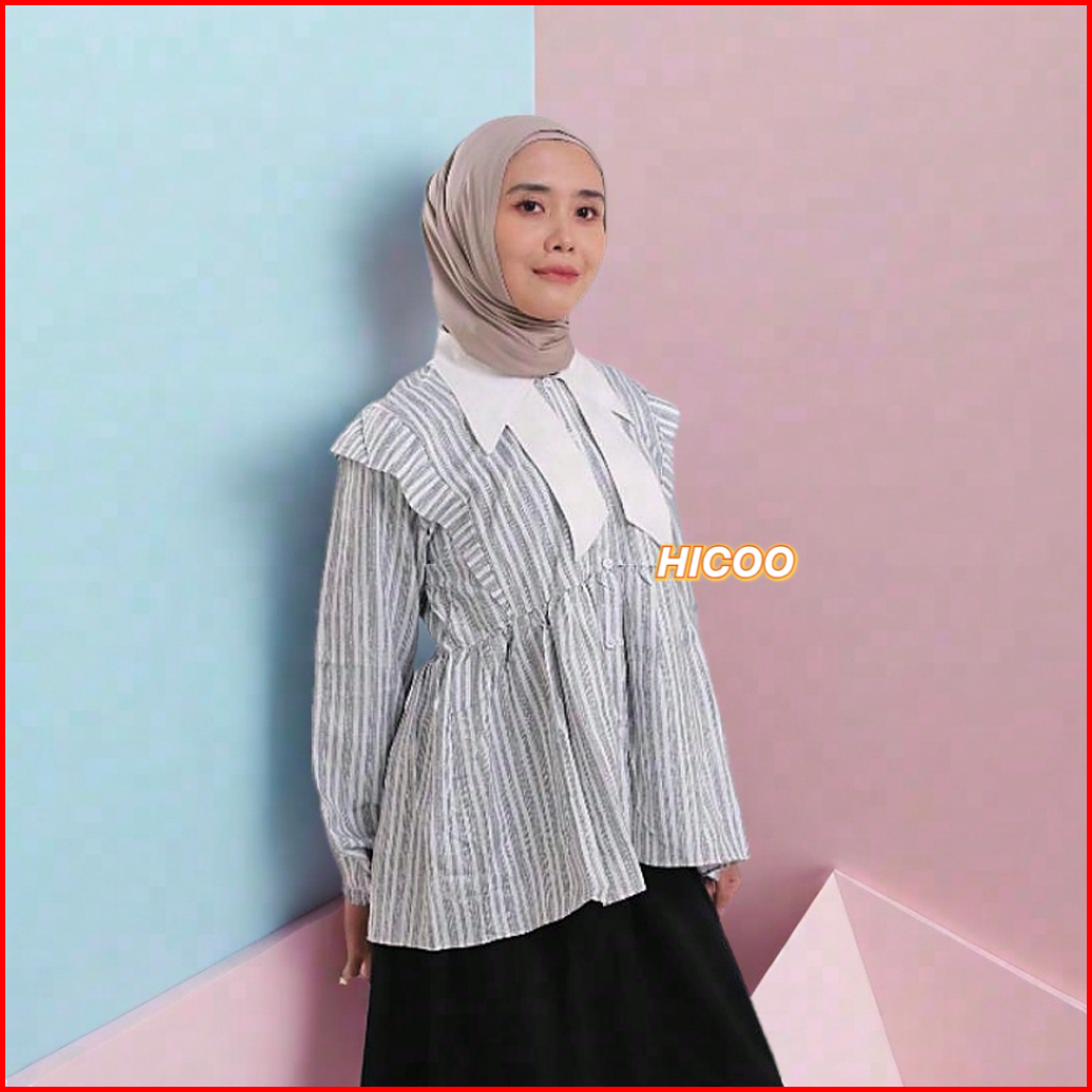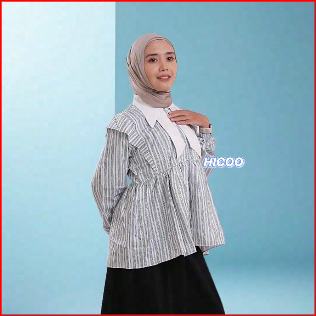 Kemeja Blouse Wanita Garis Oversize Casual Korean Style Ld 110 Hicoo