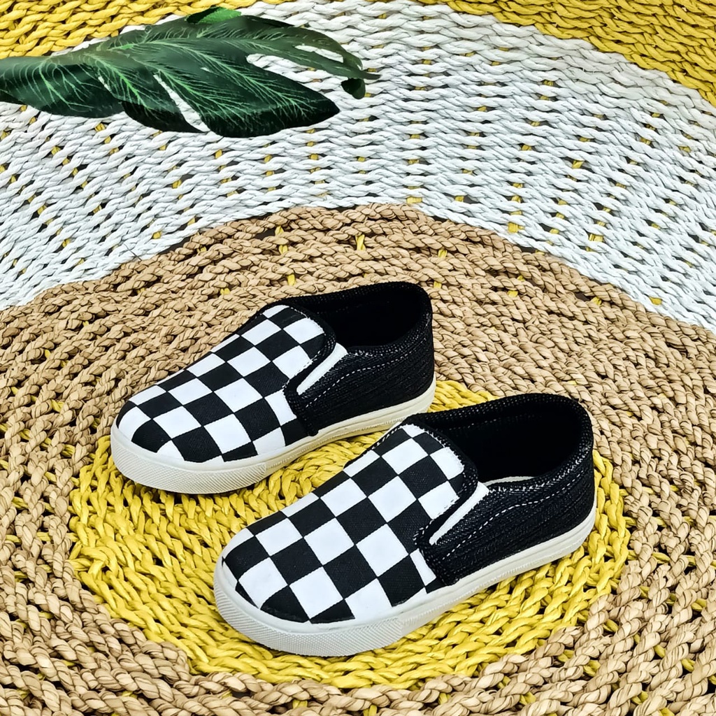 Sepatu Anak Laki-Laki Slipon Catur Hitam Murah