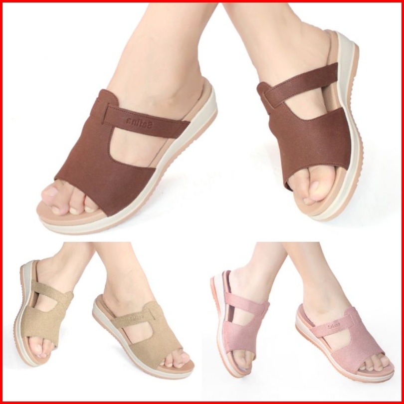 Sandal Wanita Wedges Sendal Cewek Selop Slop Teplek Karet Kondangan Kekinian Terbaru Elegan 2025 L06