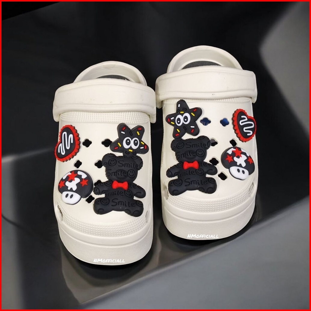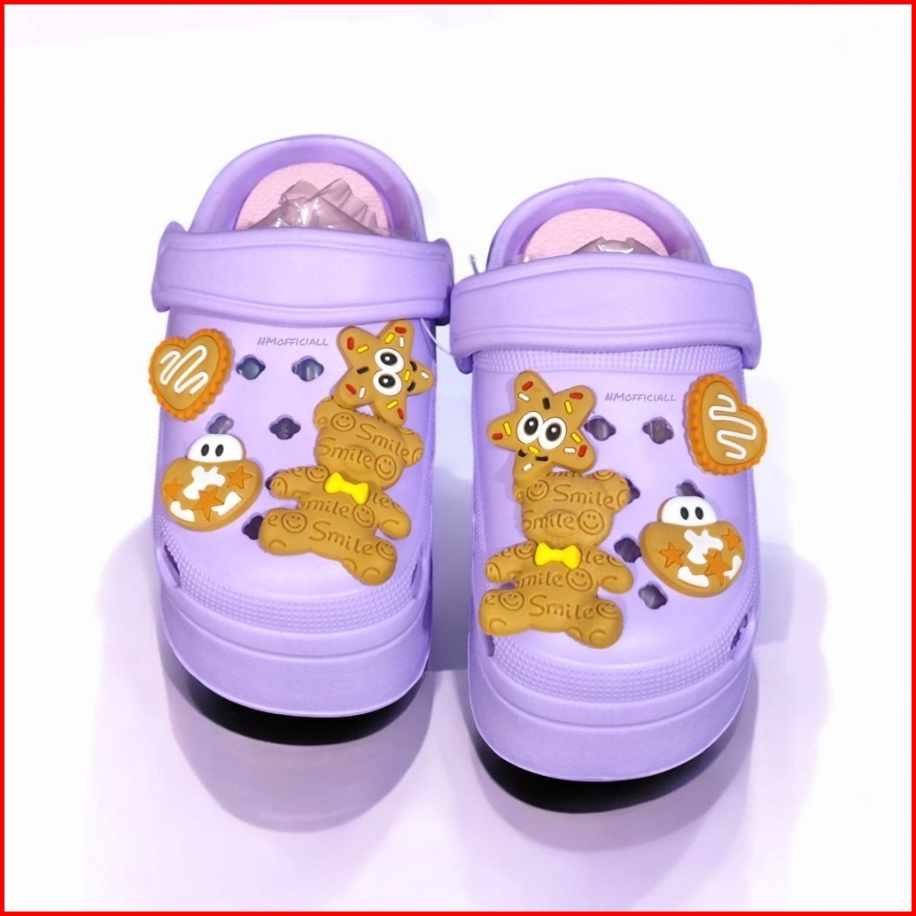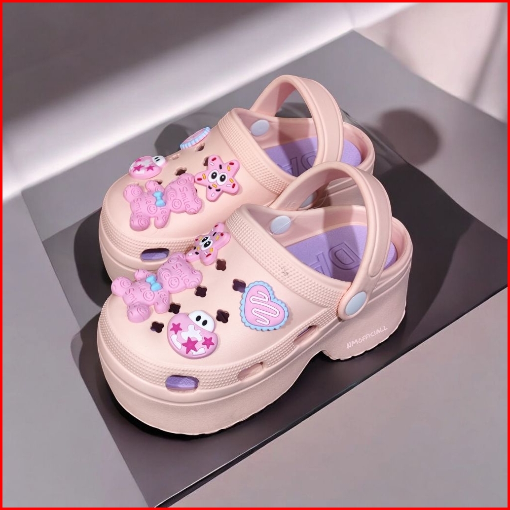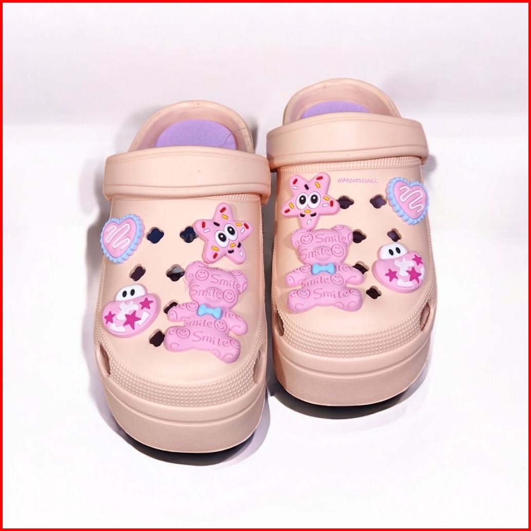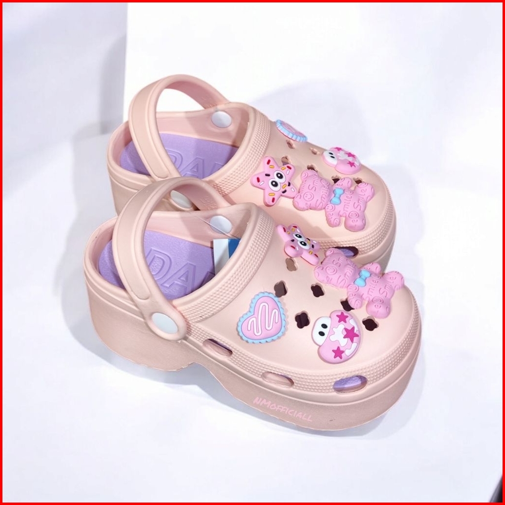 Sandal Anak Perempuan Baim Tebal Karet Eva Non Slip Fashion Warna Pink Jibbitz Bear Sendal Slop Anak Cewek Tali Belakang