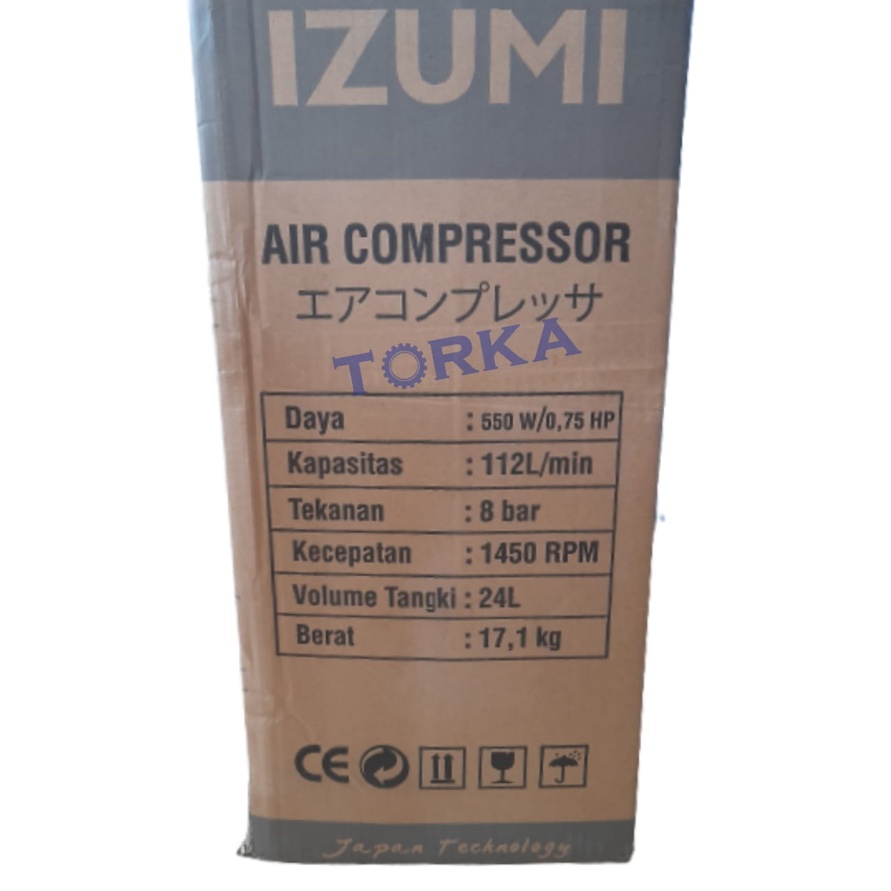 Compressor Oiless IZUMI OL 07-24 3/4HP Kompresor Angin Listrik 24Liter