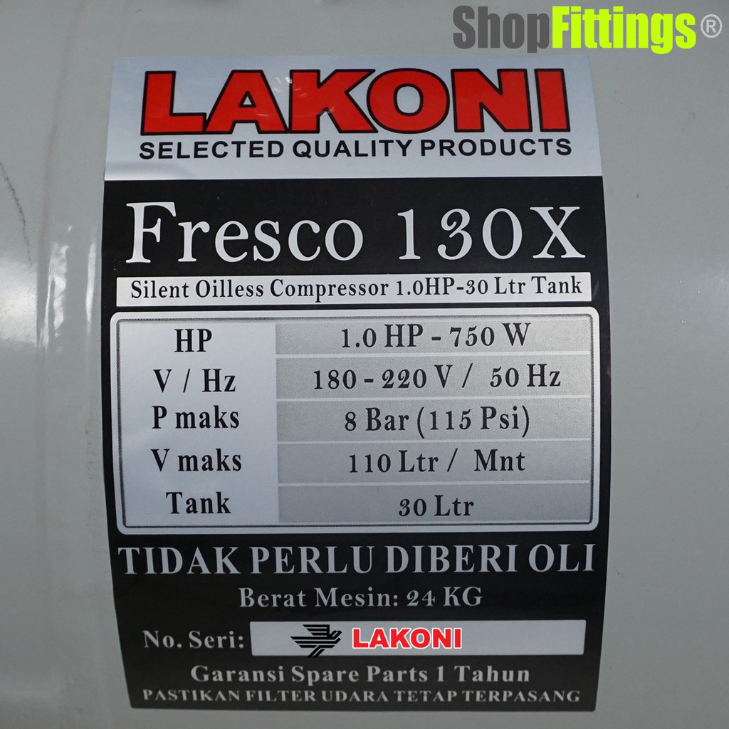 LAKONI Fresco 130 X Silent Oilless Air Compressor Kompressor Angin Tanpa Oli Tidak Berisik 30 liter