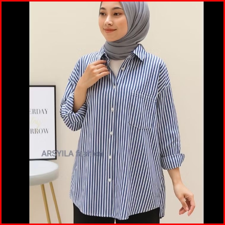 Kemeja Salur Wanita Fuka Blouse Ukuran L Xl 2xl 3xl 4xl Basic Jumbo Baju Kerja Kantor