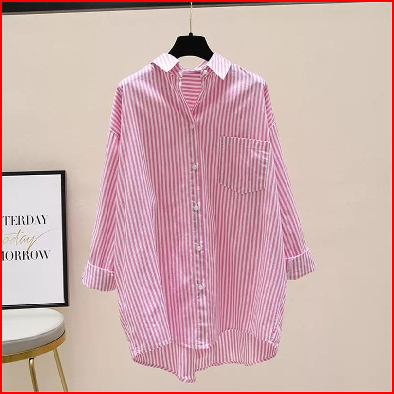 Briana Kemeja - Ukuran S M L Xl Xxl 3xl 5l - Kemeja Salur - Kemeja Wanita Jumbo - Kemeja Katun