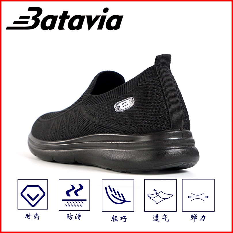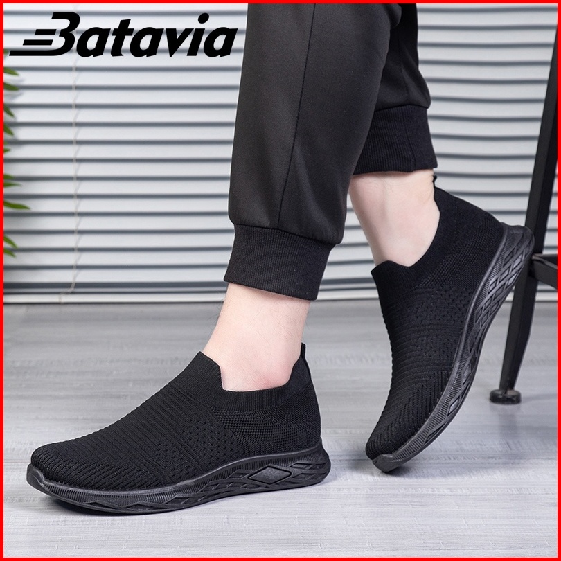 Batavia Sepatu Pria Ultra Ringan Hitam Slip-on Senior Sepatu Kasual Kets Sol Lembut Sepatu Men J