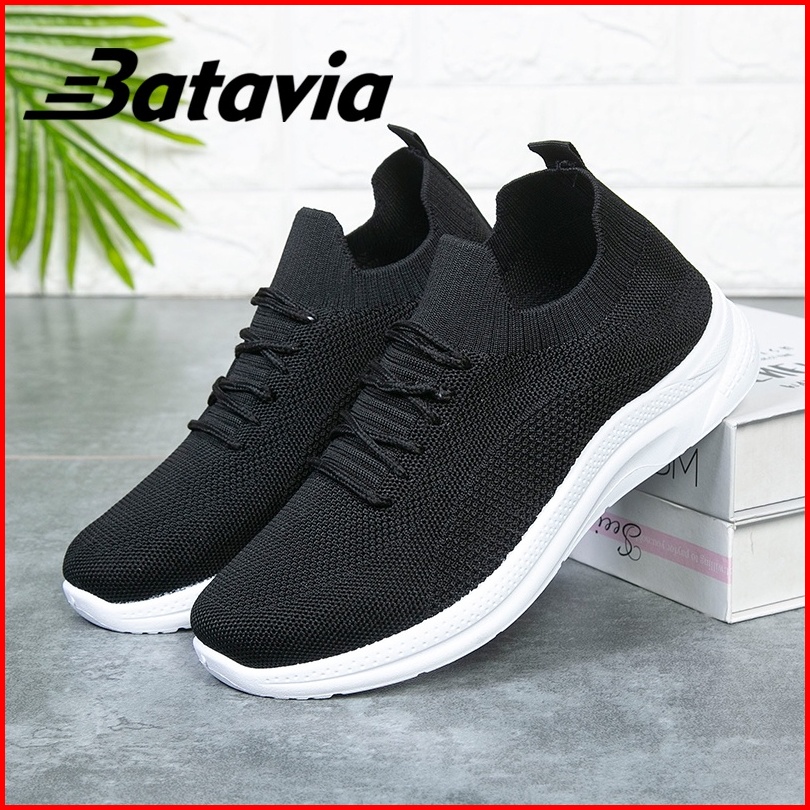 Batavia Grosir Sepatu Kanvas Wanita Rajut Sepatu Wanita Sepatu Tanpa Tali Hitam Sneakers P4