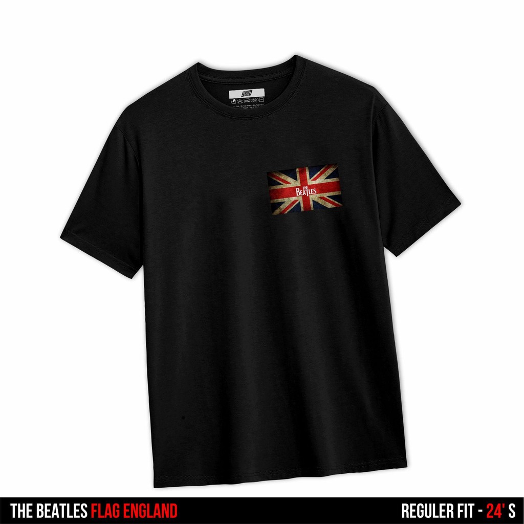 SHIROAPPAREL T-Shirt | Kaos Band | THE BEATLES Flag England Pria Wanita Cotton Combed 24s