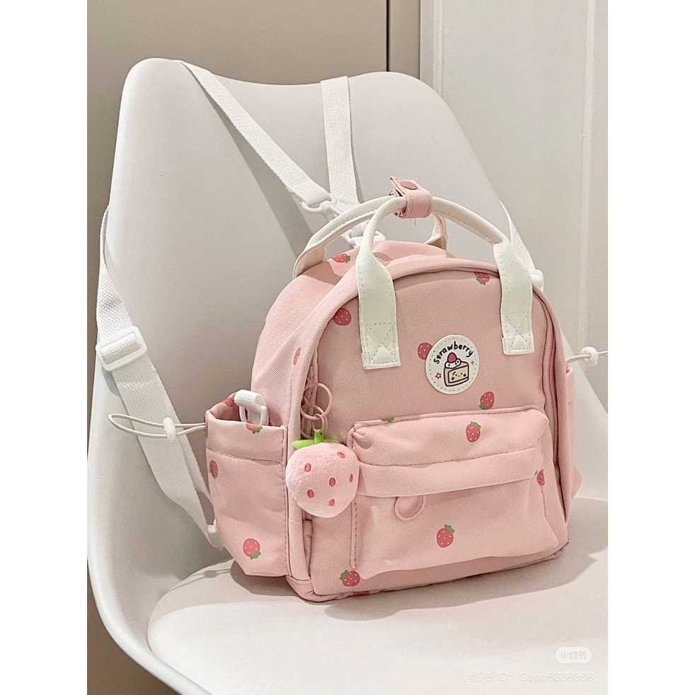 Tas Ransel Mini Motif Strawberry Sekolah dan Hangout Anak Perempuan