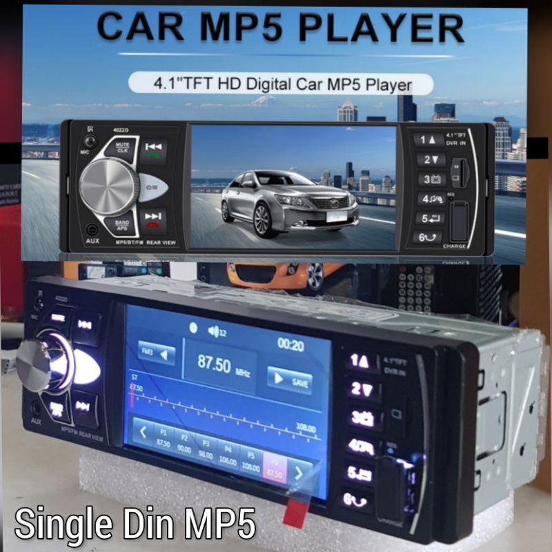 (SUPPORT KAMERA MUNDUR LAYAR 4.1 inch) Tape Mobil Head Unit Single din Vidio Mp5 Bluetooth USB
