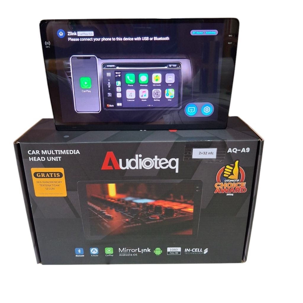 Head unit android 9 inch audioteq AQ-A9 ram 2+32 NFC incell blackscreen android auto carplay
