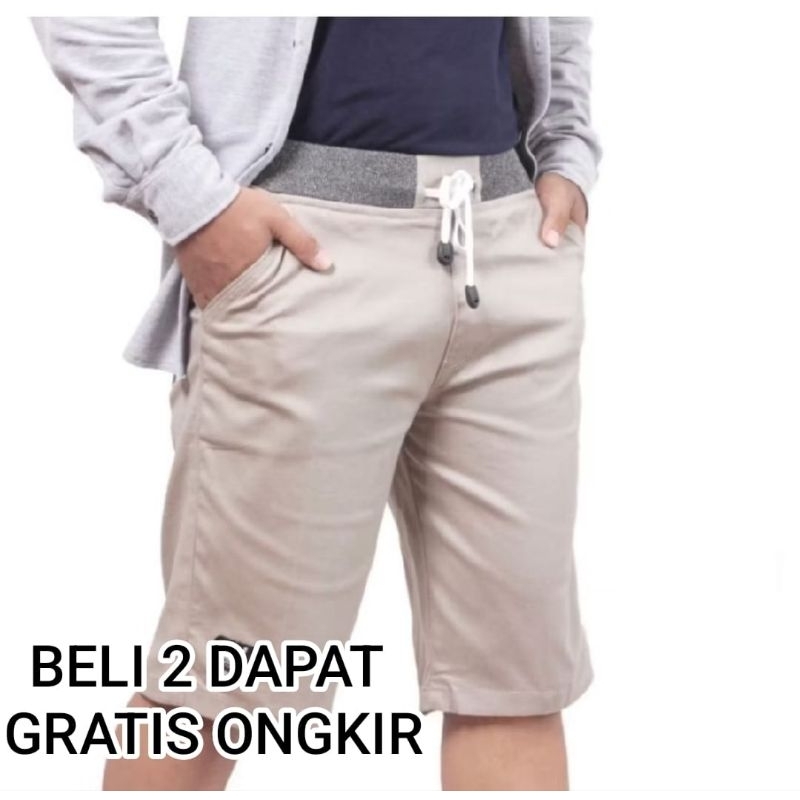 Celana Pendek Pria Cowok Dewasa Chino Rip Karet Pinggang Kolor Chinos Katun NicoPedia