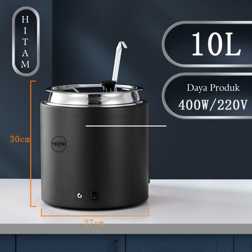 Panci Sup Listrik 10L Komersial – Pemanas Sup Kering Tanpa Air, Penghangat Bubur & Makanan Prasmanan, Inner Pot Stainles