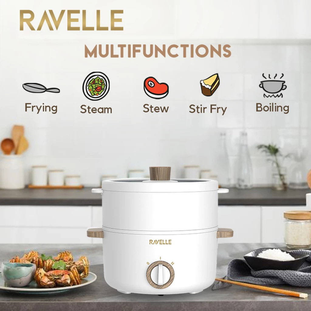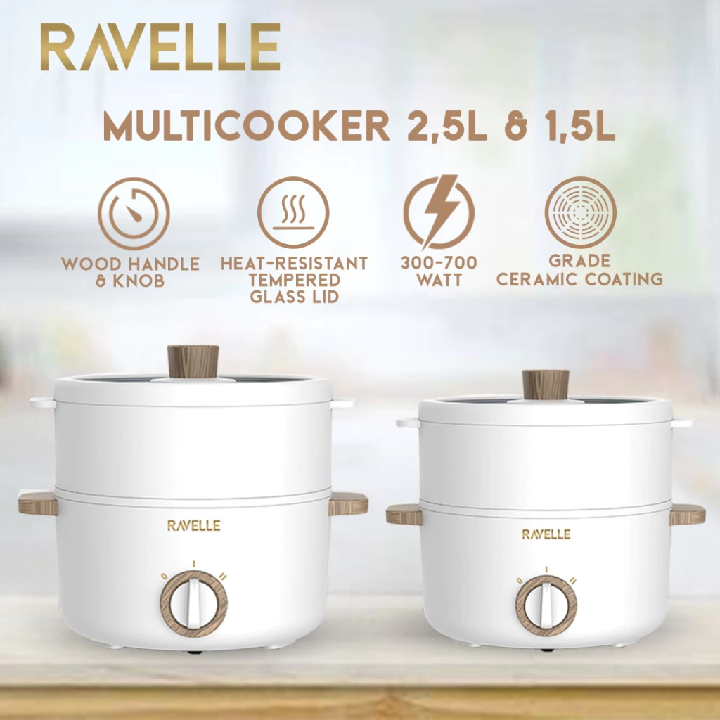 RAVELLE Multicooker 2.5 Liter - Panci Kukusan Listrik Multifungsi Low Watt