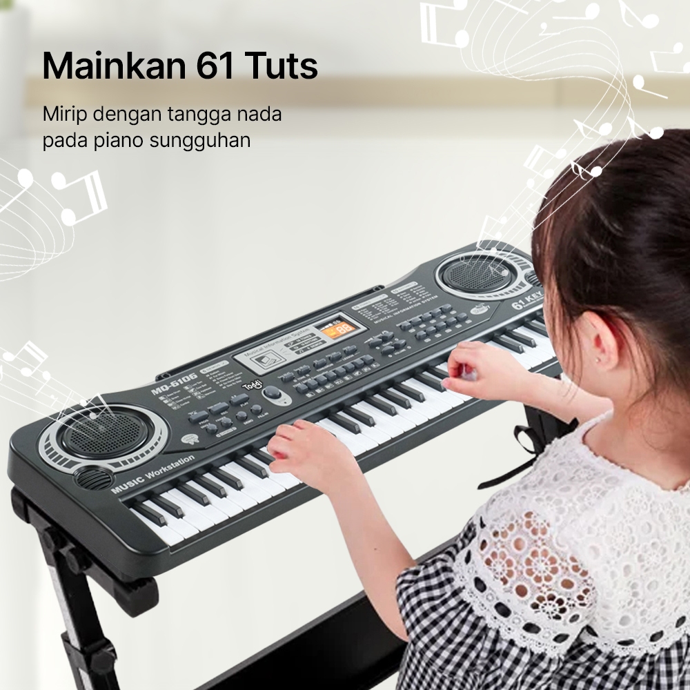 R3w Piano Digital Electronic Keyboard 61 Keys musik + mic music pro alat Mainan Anak MQ-6106 jnp Tma / Mainan Anak Piano