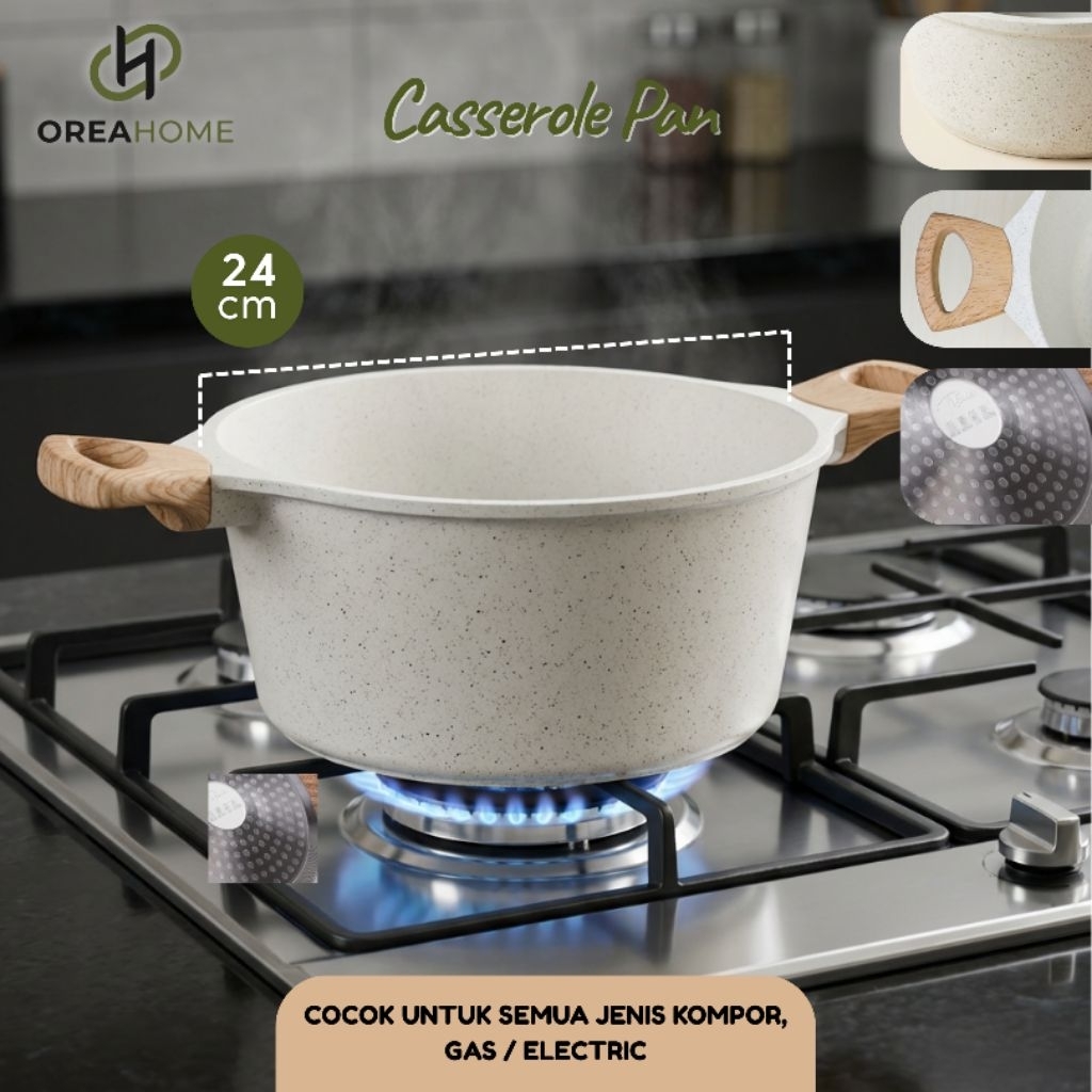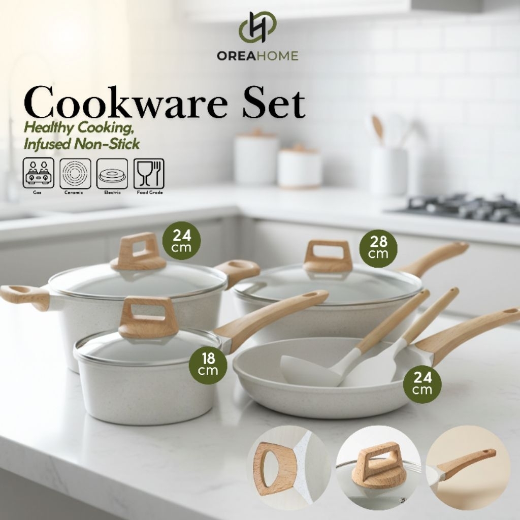 Oreahome Wajan Panci Set 7 Pcs Ukuran 28/24/24/18 Cm Ceramic Anti Lengket