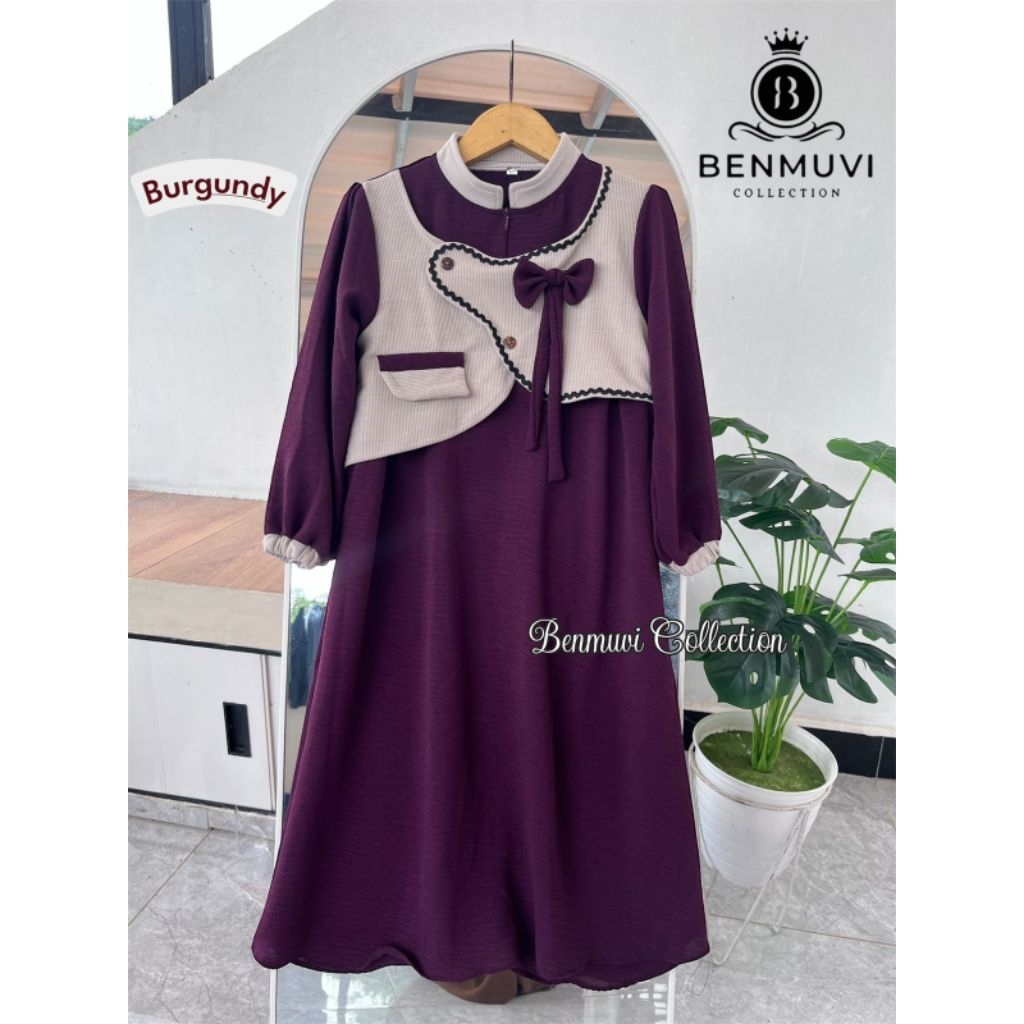 Gamis Laura Anak Terbaru Gamis Couple Mom & Kids Dress Rompi Knit Pita Baju Perempuan Trendy