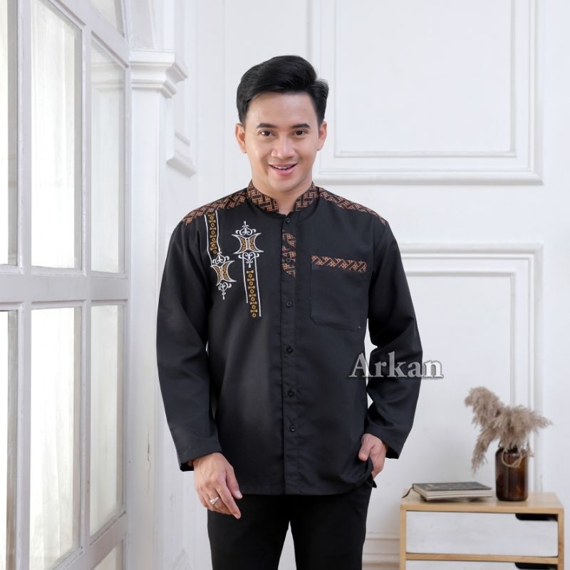 Baju Kemeja Koko Pria Dewasa Lengan Panjang Koko Bordil Kombinasi Batik M L Xl Xxl