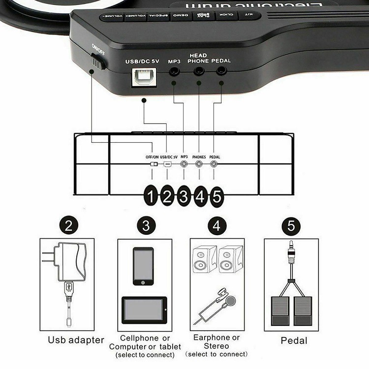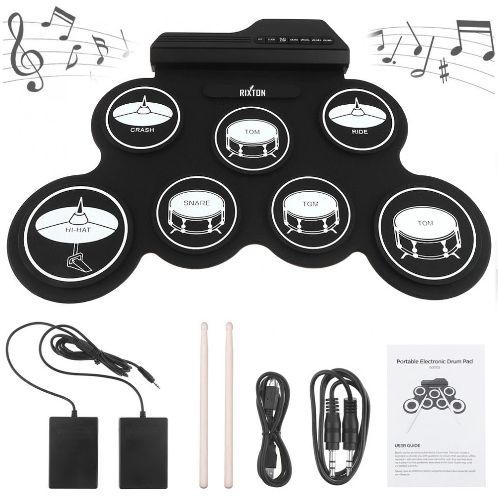 Rixton Digital Portabel Drum Roll Drum Elektronik Perkusi Portabel Silicone Hand Roll Drum Kit Drum Jazz USB Elektronik