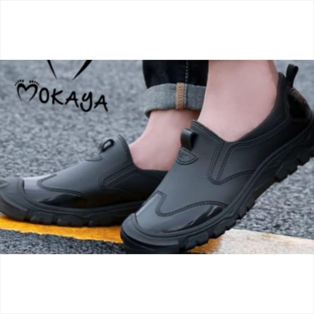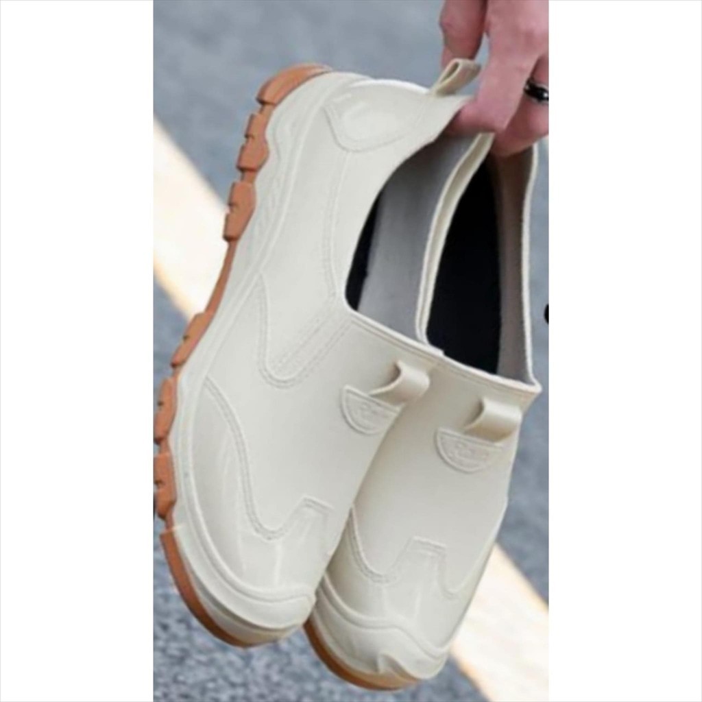 Sepatu Sport Karet Jelly Pria Garis Semi Glossy Anti Slip Super Keren Casual Trendy Import Mokaya / Size 40-44 (528)